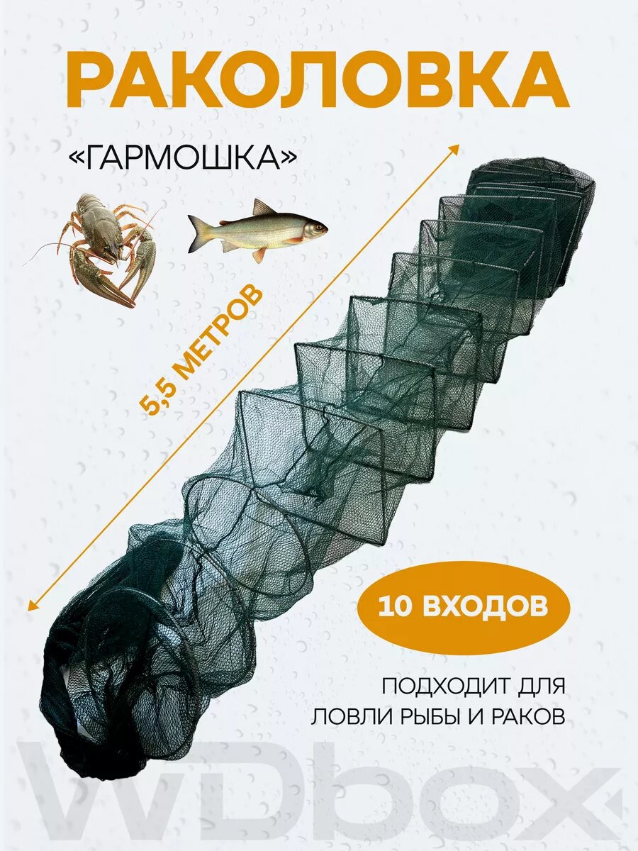 Раколовка для раков гармошка 5,5 м от WDbox представляет собой идеальный инструмент для любителей спортивного ловли. Эта длинная малечница с 10 входами предназначена для универсального использования, что делает её отличным выбором для ловли различных видов раков. Темно-зеленый цвет позволяет малечнице хорошо скрываться в воде, что увеличивает шансы на успешный улов. Созданная с учетом всех требований к качеству и надежности, раколовка WDbox станет вашим надежным помощником в любых условиях ловли.