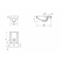 Раковина прямоугольной формы шириной 50 см и глубиной 40 см, что обеспечивает максимум места для умывальных принадлежностей. Она может быть установлена на тумбу или в качестве подвесной (без пьедестала и тумбы) в интерьерах санузлов.