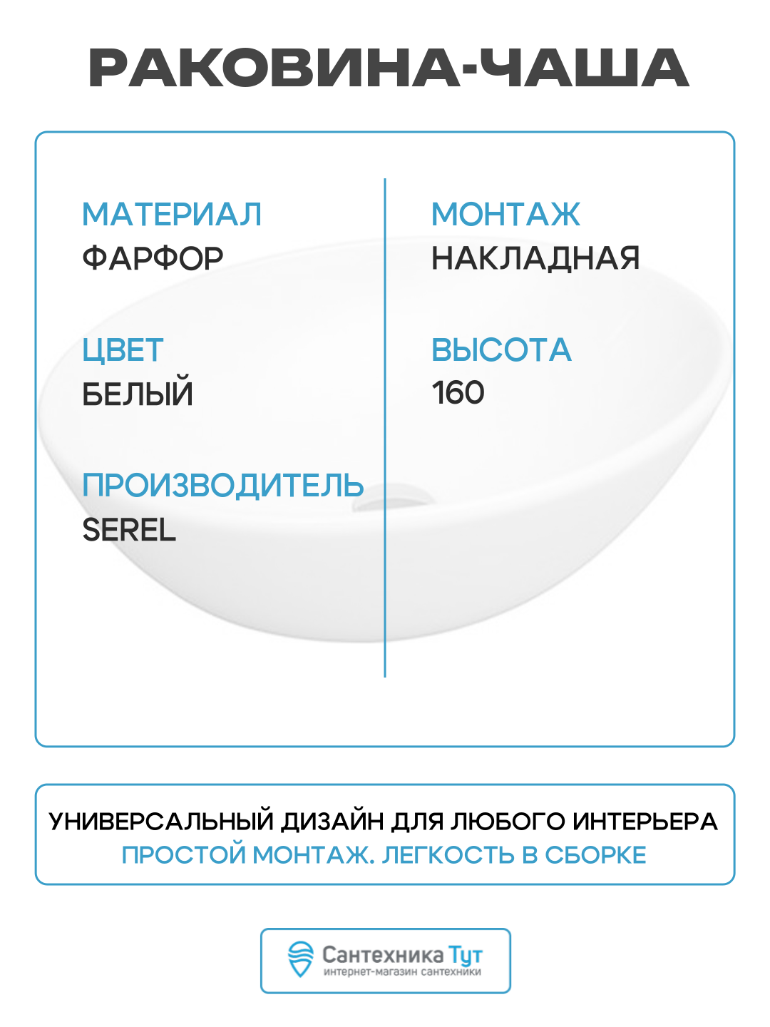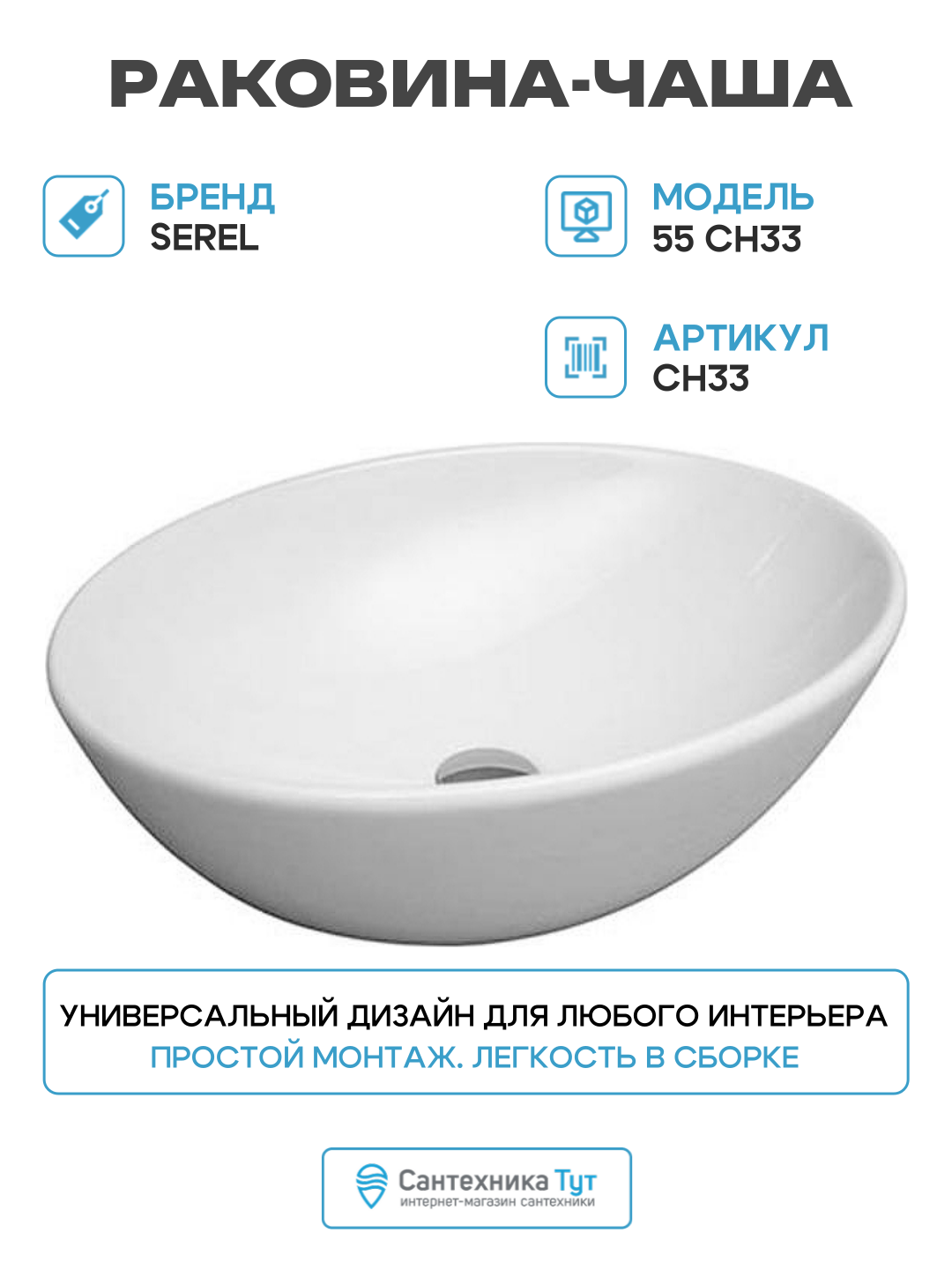 Раковина 55×41 см Serel CH33: сравнение цен, характеристики, фото, актуальное наличие и цены.