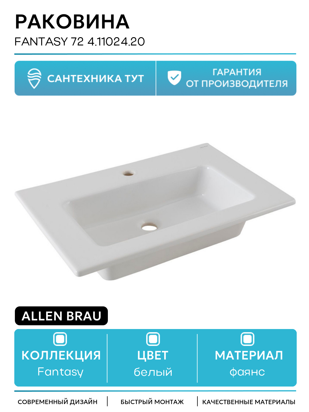 Купить Раковина Allen Brau Fantasy 72 4.11024.20 Белая фаянс полувстраиваемая 71.5 с доставкой по всей России. Раковина Allen Brau Fantasy 72 4.11024.20 Белая фаянс полувстраиваемая 71.5: сравнение цен, характеристики, фото, актуальное наличие и цены.