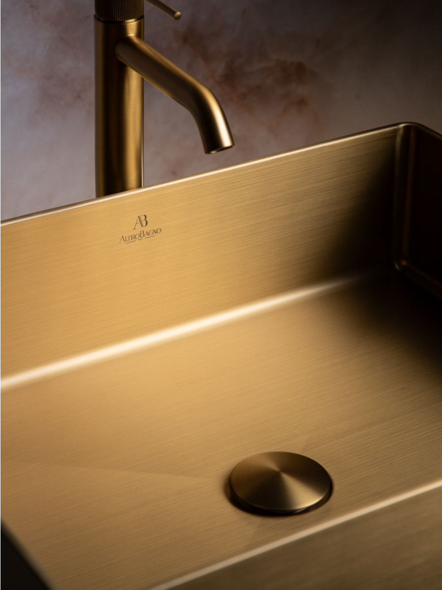 Купить Раковина в ванную накладная на столешницу из нержавеющей стали, матовое золото с доставкой по всей России.