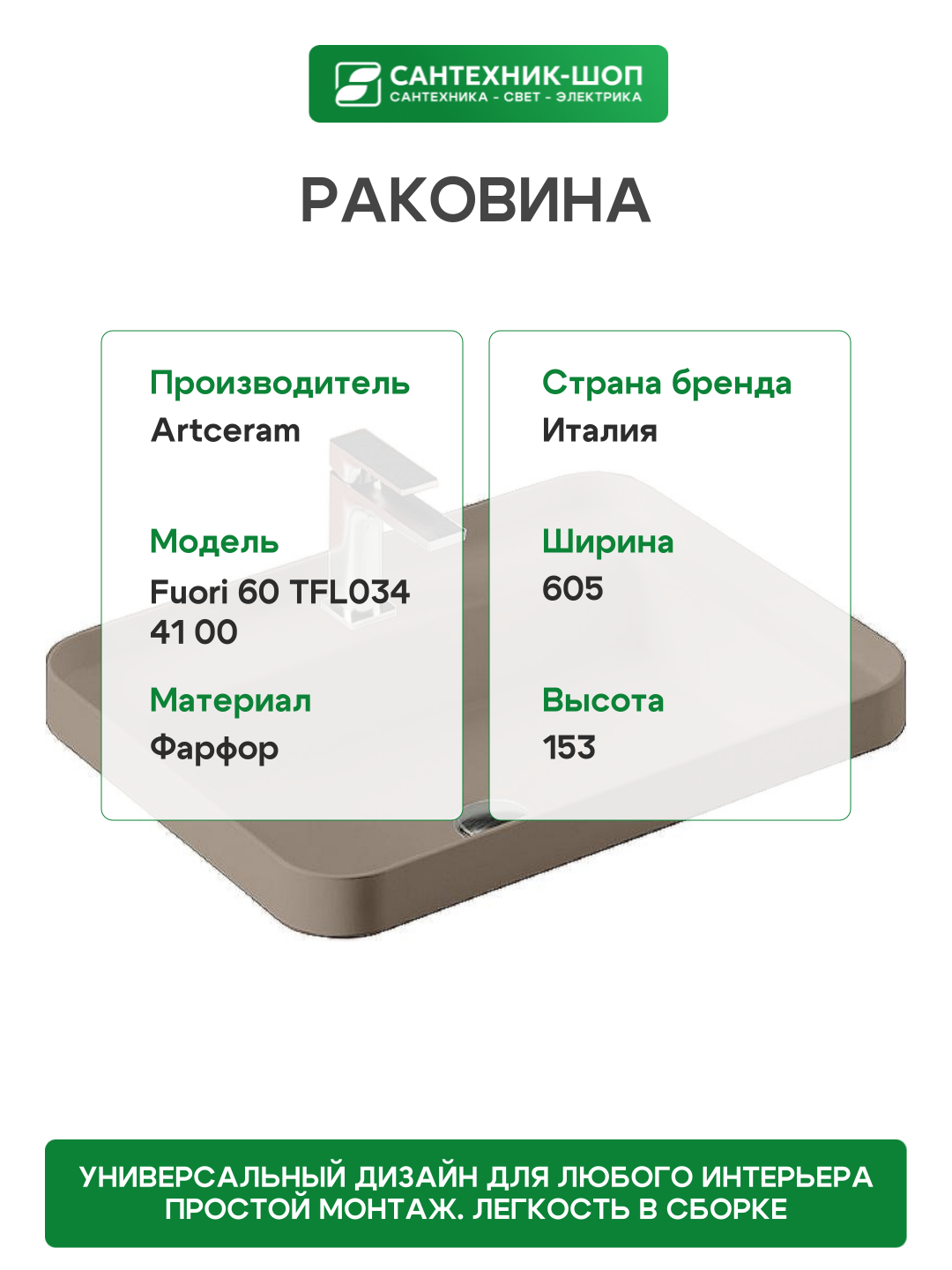 Раковина Artceram Fuori 60 TFL034 41 00 Matera фарфор полувстраиваемая 60.5 Италия: сравнение цен, характеристики, фото, актуальное наличие и цены.