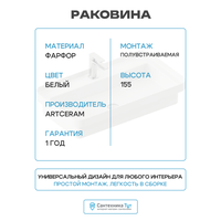 Раковина Artceram Fuori 80 TFL035 01 00 Белая фарфор полувстраиваемая 805 Италия: сравнение цен, характеристики, фото, актуальное наличие и цены.