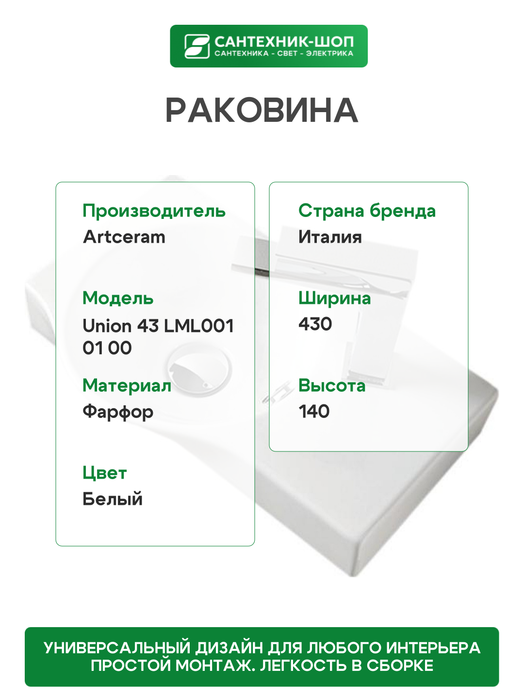 Раковина Artceram Union 43 LML001 01 00 Белая фарфор подвесная, накладная 43 Италия: сравнение цен, характеристики, фото, актуальное наличие и цены.