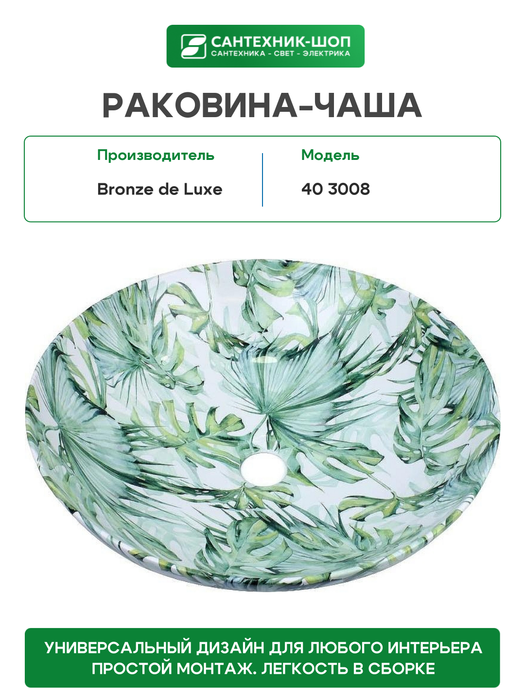 Купить Раковина-чаша Bronze de Luxe 40 3008 Белая Зеленая фаянс накладная с доставкой по всей России. Раковина-чаша Bronze de Luxe 40 3008 Белая Зеленая фаянс накладная: сравнение цен, характеристики, фото, актуальное наличие и цены.