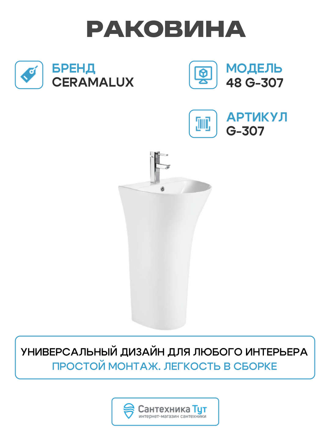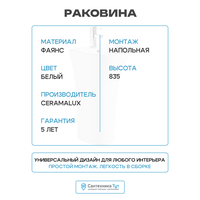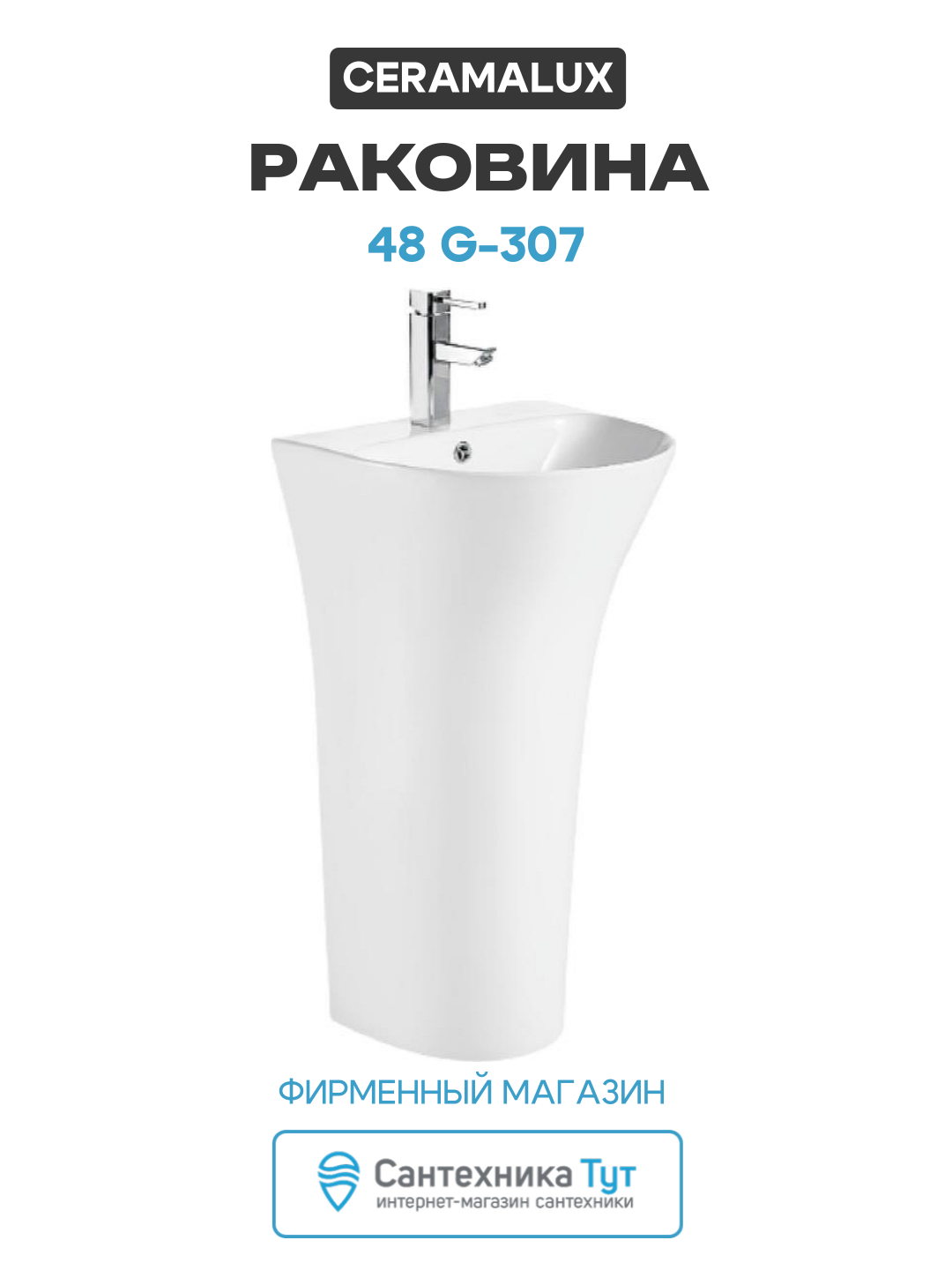 Купить Раковина CeramaLux 48 G-307 Белая фаянс напольный 48 Россия, современный стиль с доставкой по всей России. Раковина CeramaLux 48 G-307 Белая фаянс напольный 48 Россия, современный стиль: сравнение цен, характеристики, фото, актуальное наличие и цены.