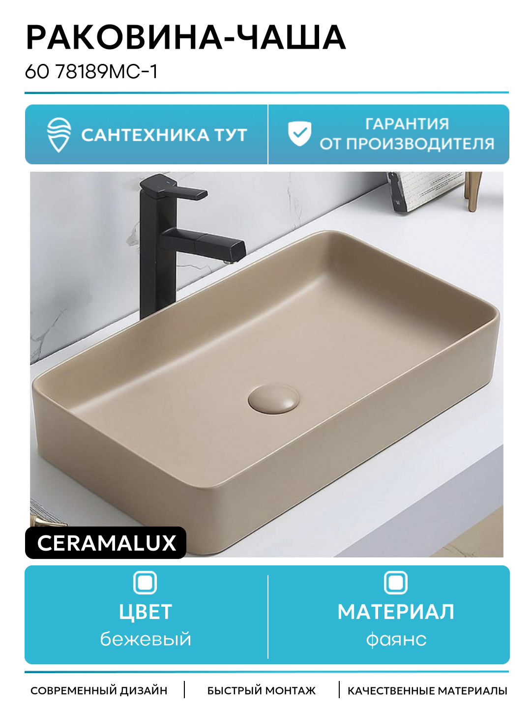 Раковина-чаша CeramaLux 60 78189MC-1 Капучино фаянс накладная 60.5: сравнение цен, характеристики, фото, актуальное наличие и цены.