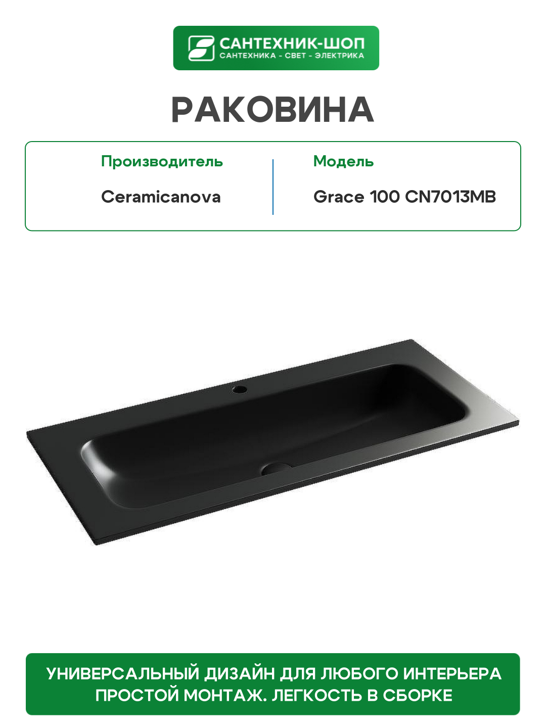 Раковина Ceramicanova Grace 100 CN7013MB Черная матовая: сравнение цен, характеристики, фото, актуальное наличие и цены.
