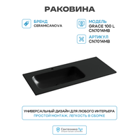 Купить Раковина Ceramicanova Grace 100 L CN7014MB Черная матовая фарфор полувстраиваемая 1010, Италия с доставкой по всей России. Раковина Ceramicanova Grace 100 L CN7014MB Черная матовая фарфор полувстраиваемая 1010, Италия: сравнение цен, характеристики, фото, актуальное наличие и цены.