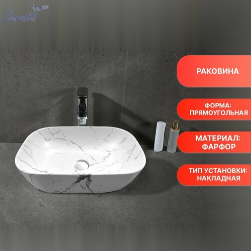 Раковина Ceruttispa CR8215MMW накладная, мрамор матовый белый, прямоугольная 455х320х135: сравнение цен, характеристики, фото, актуальное наличие и цены.