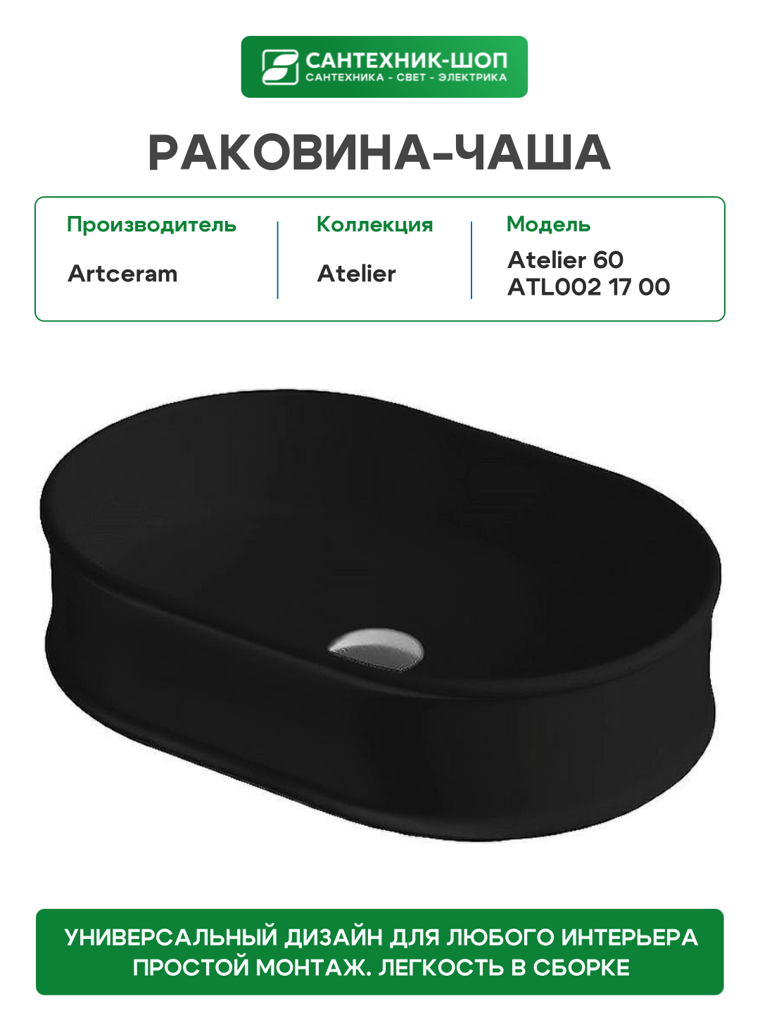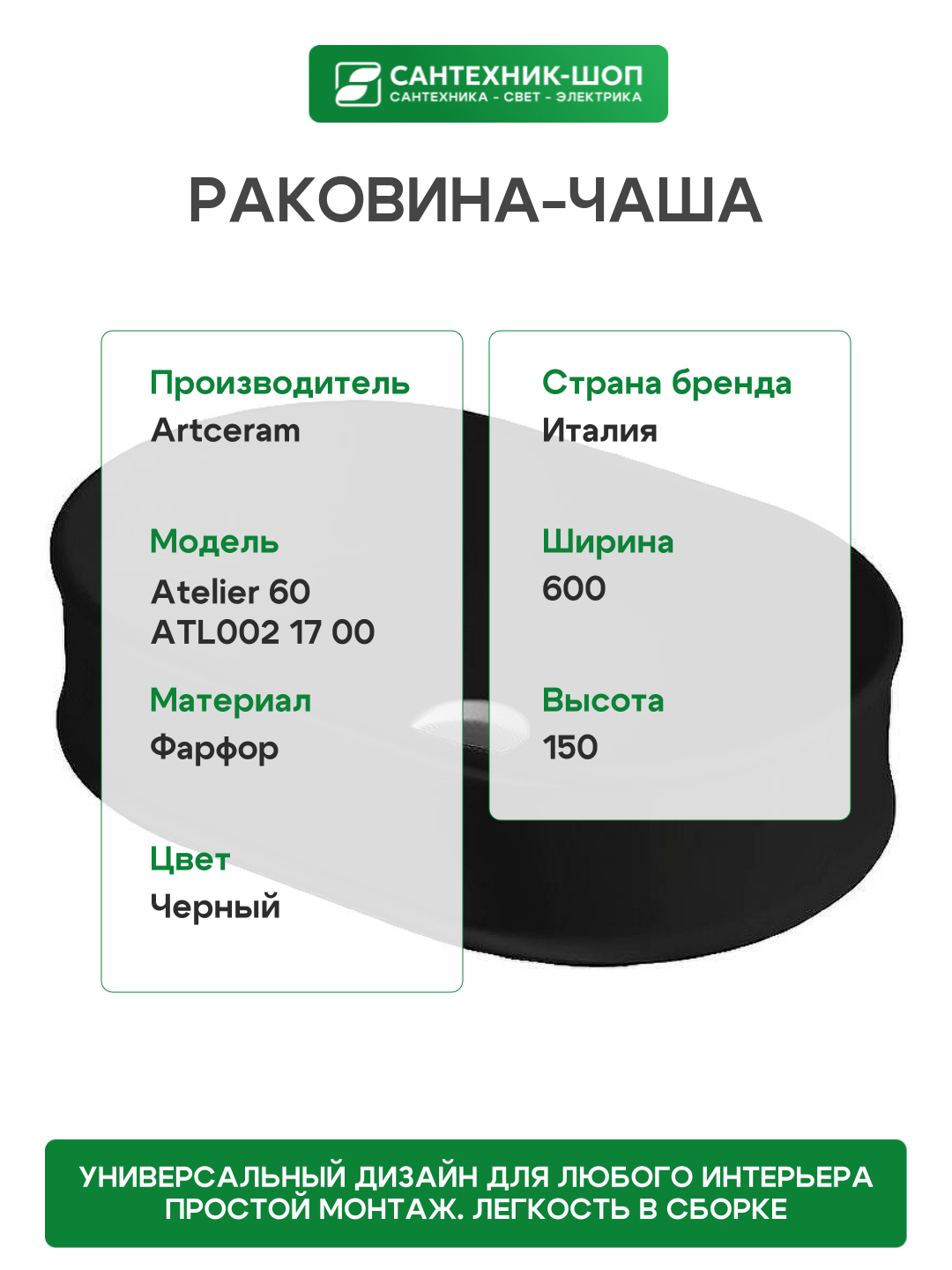 Раковина-чаша Artceram Atelier 60 ATL002 17 00 Черная матовая фарфор накладная 60 Италия: сравнение цен, характеристики, фото, актуальное наличие и цены.