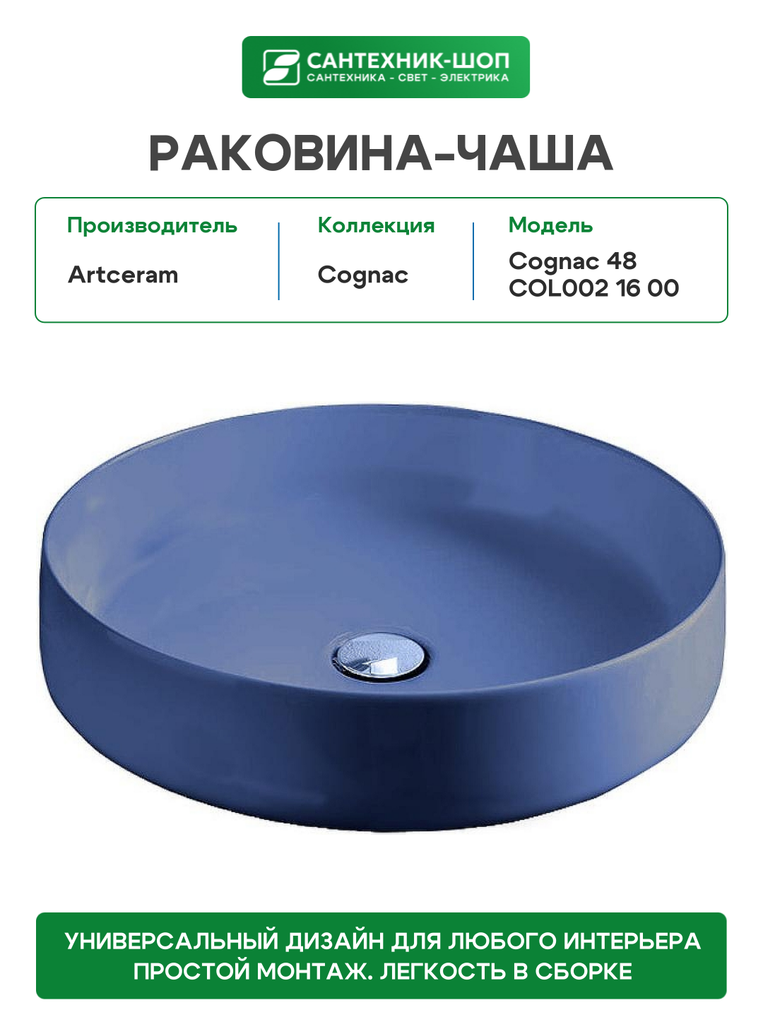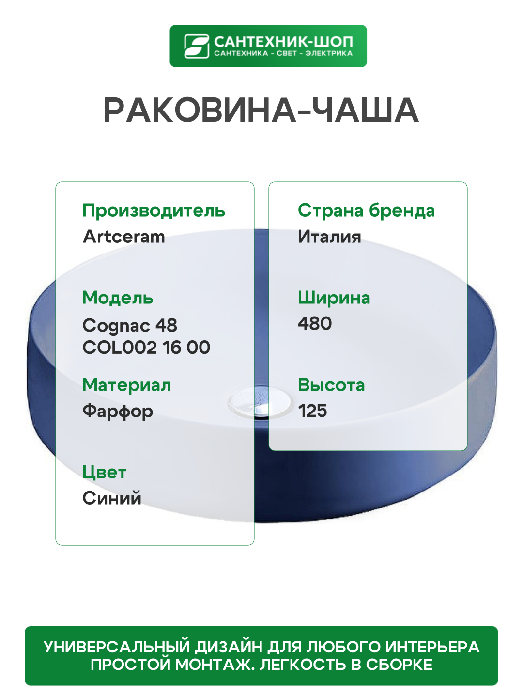 Раковина-чаша Artceram Cognac 48 COL002 16 00 Blu zaffiro фарфор накладная: сравнение цен, характеристики, фото, актуальное наличие и цены.