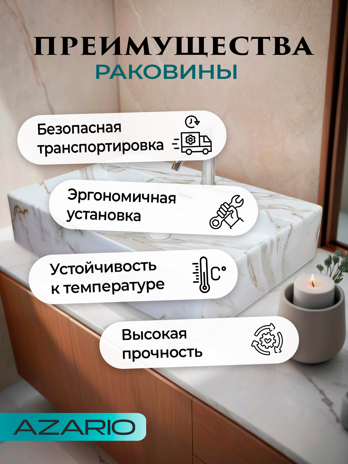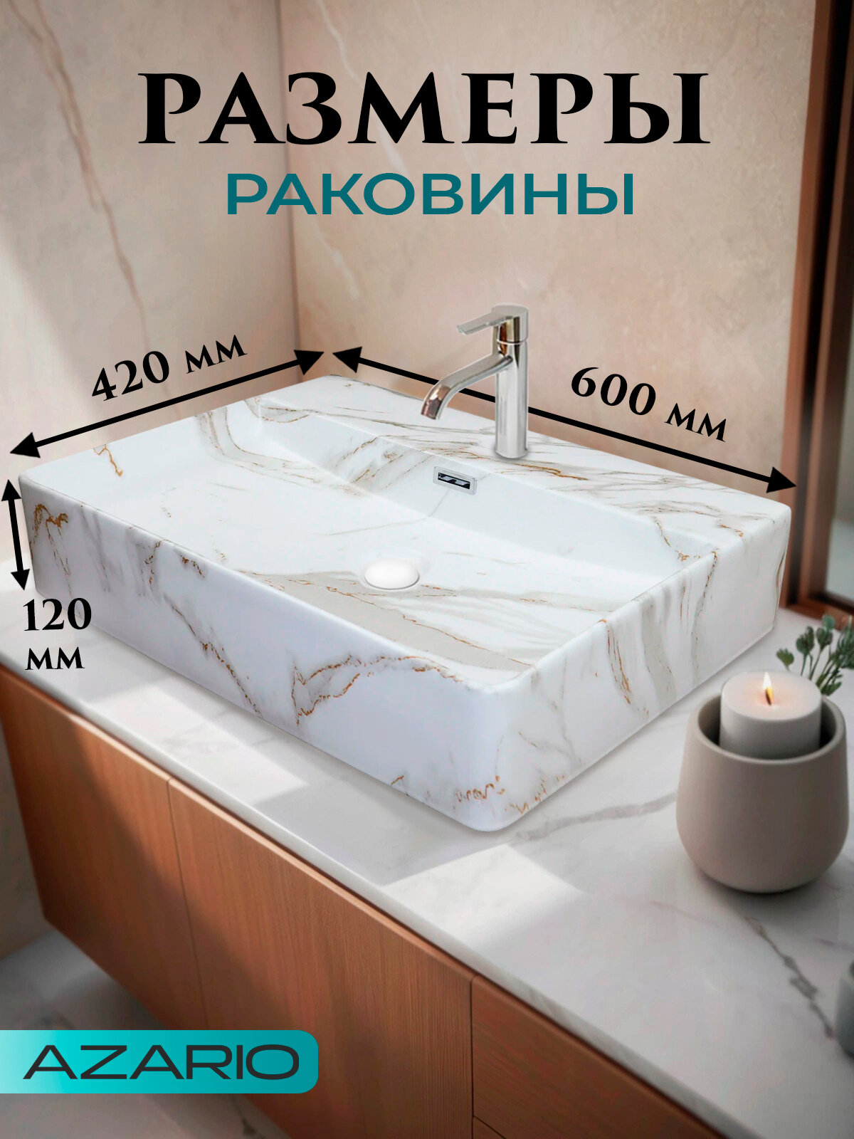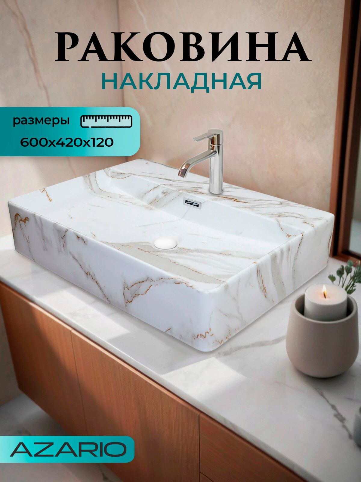 Раковина накладная Azario 600х420х120 прямоугольная, светлый мрамор (AZ-2173-M845): сравнение цен, характеристики, фото, актуальное наличие и цены.