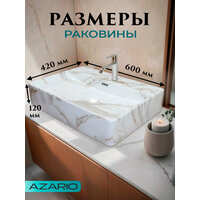 Купить Раковина накладная Azario 600х420х120 прямоугольная, светлый мрамор (AZ-2173-M845) с доставкой по всей России.