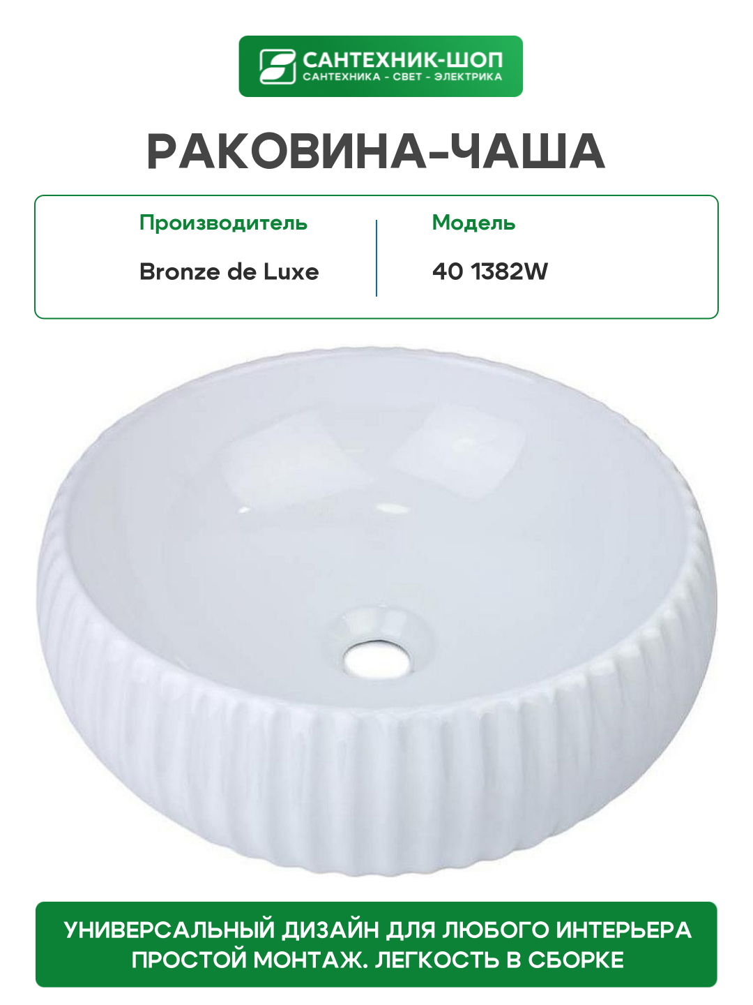 Раковина-чаша Bronze de Luxe 40 1382W Белая фаянс накладная: сравнение цен, характеристики, фото, актуальное наличие и цены.