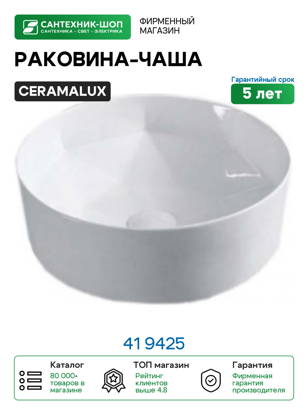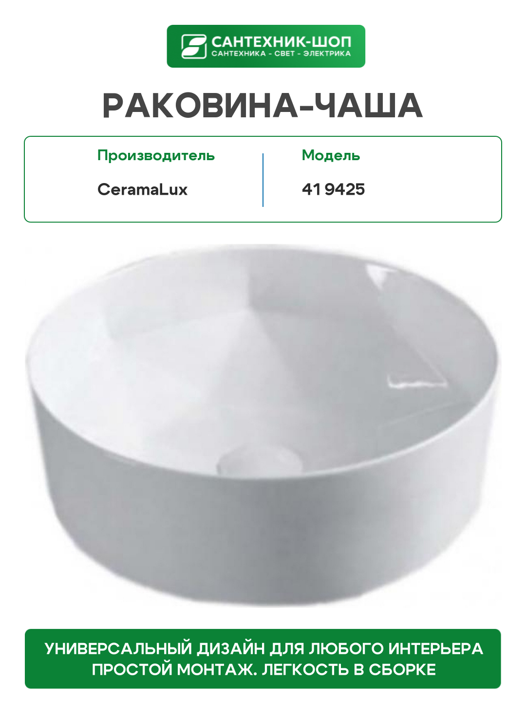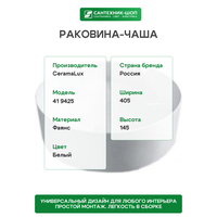 Раковина-чаша CeramaLux 41 9425 Белая: сравнение цен, характеристики, фото, актуальное наличие и цены.