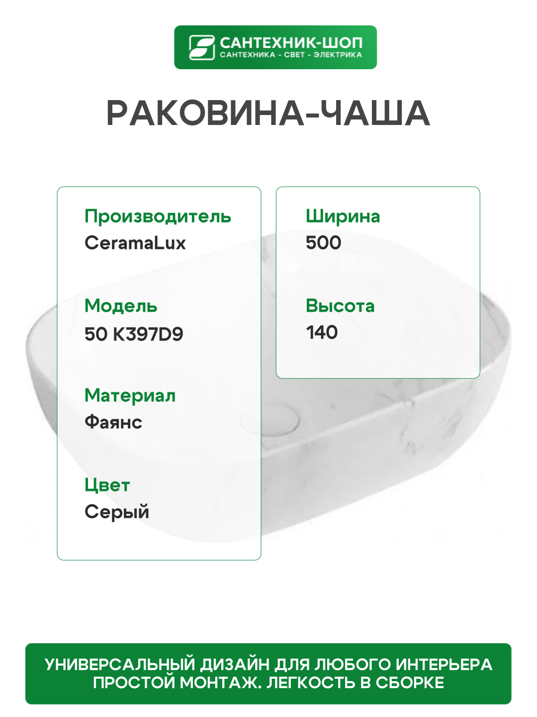 Раковина-чаша CeramaLux 50 K397D9 Белая фаянс накладная: сравнение цен, характеристики, фото, актуальное наличие и цены.