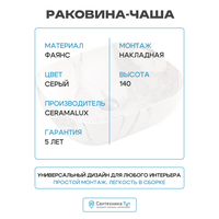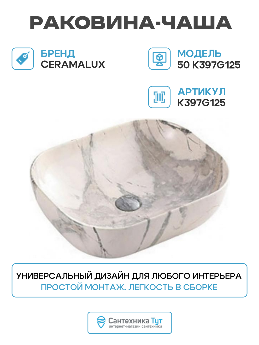 Раковина-чаша CeramaLux 50 K397G125 фаянс накладная 50, стильный дизайн: сравнение цен, характеристики, фото, актуальное наличие и цены.