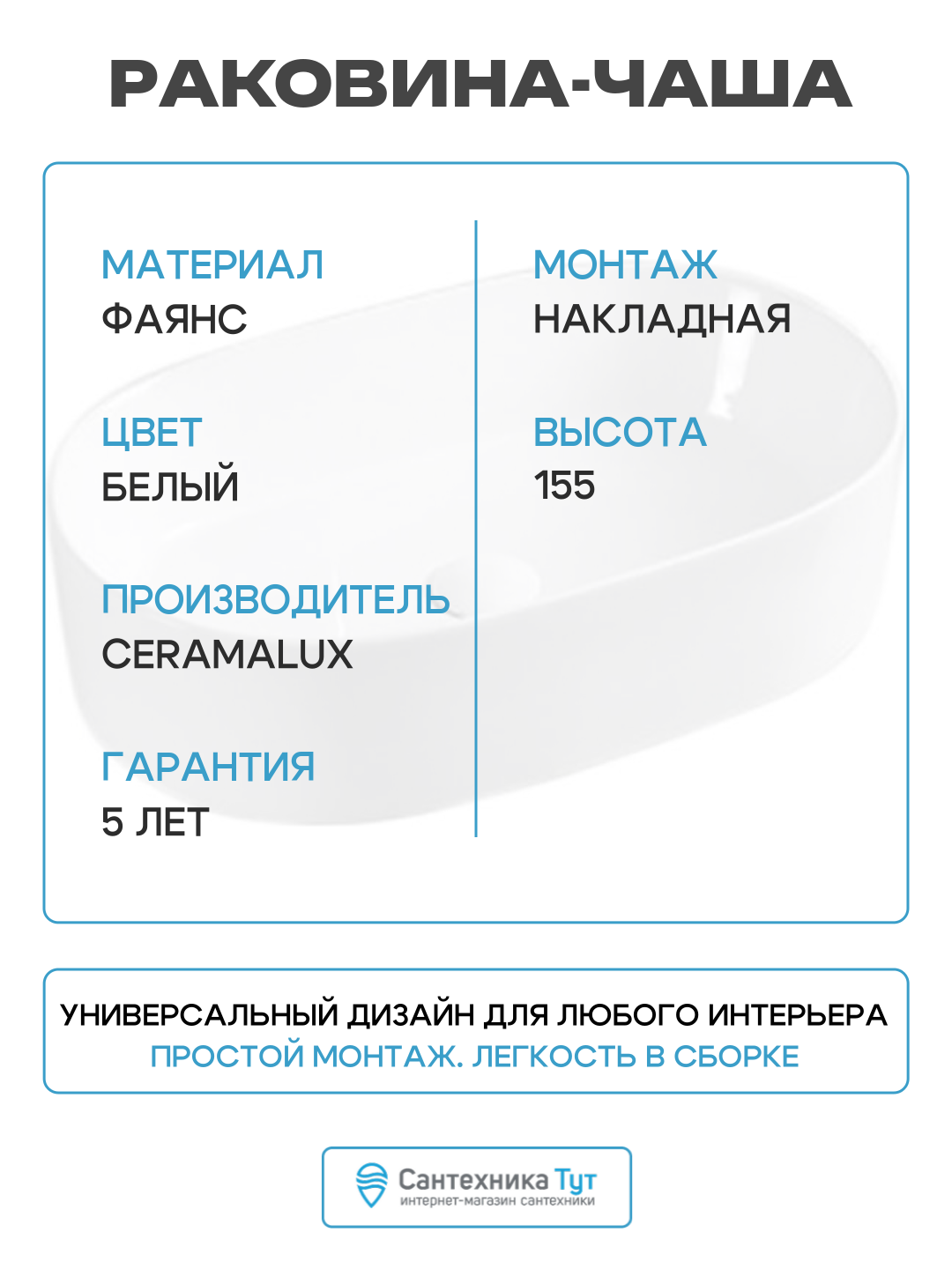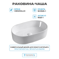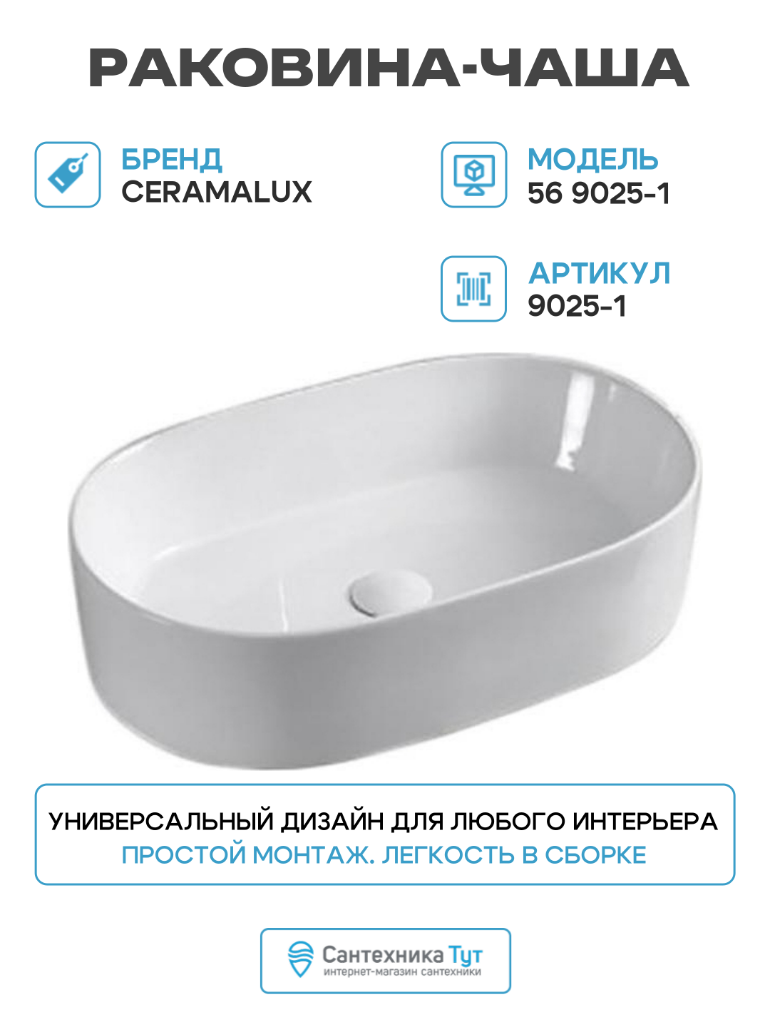 Раковина-чаша CeramaLux 56 9025-1 Белая фаянс накладная 56.5: сравнение цен, характеристики, фото, актуальное наличие и цены.