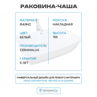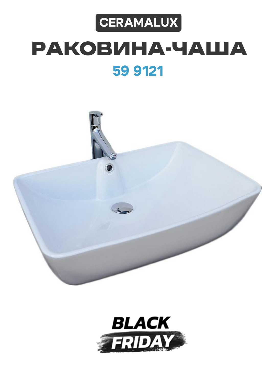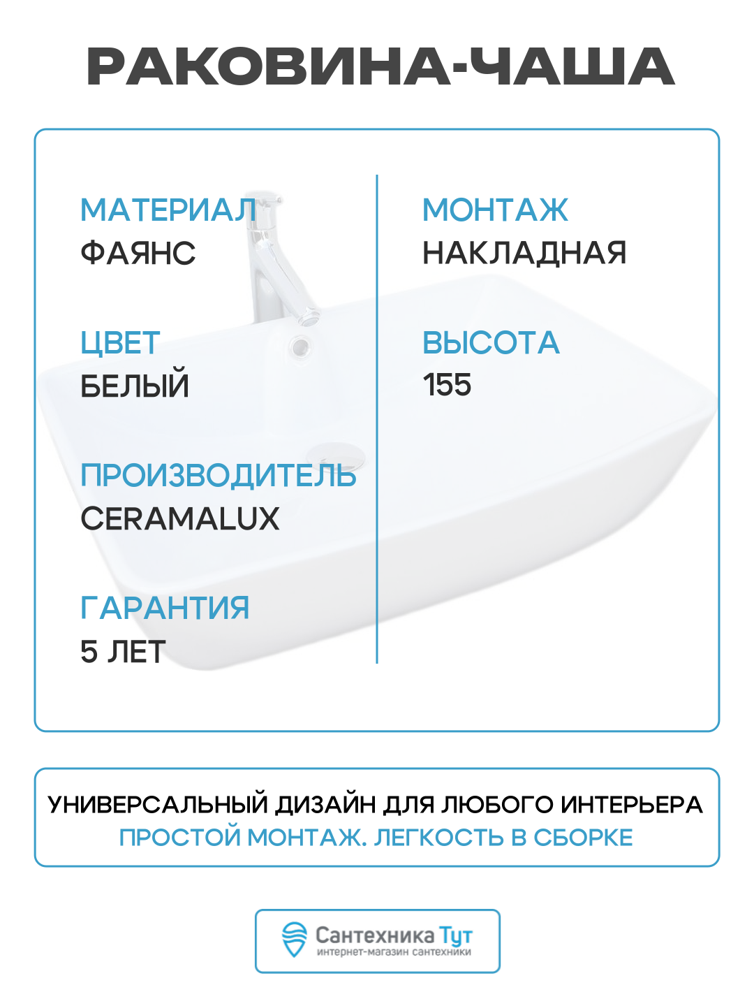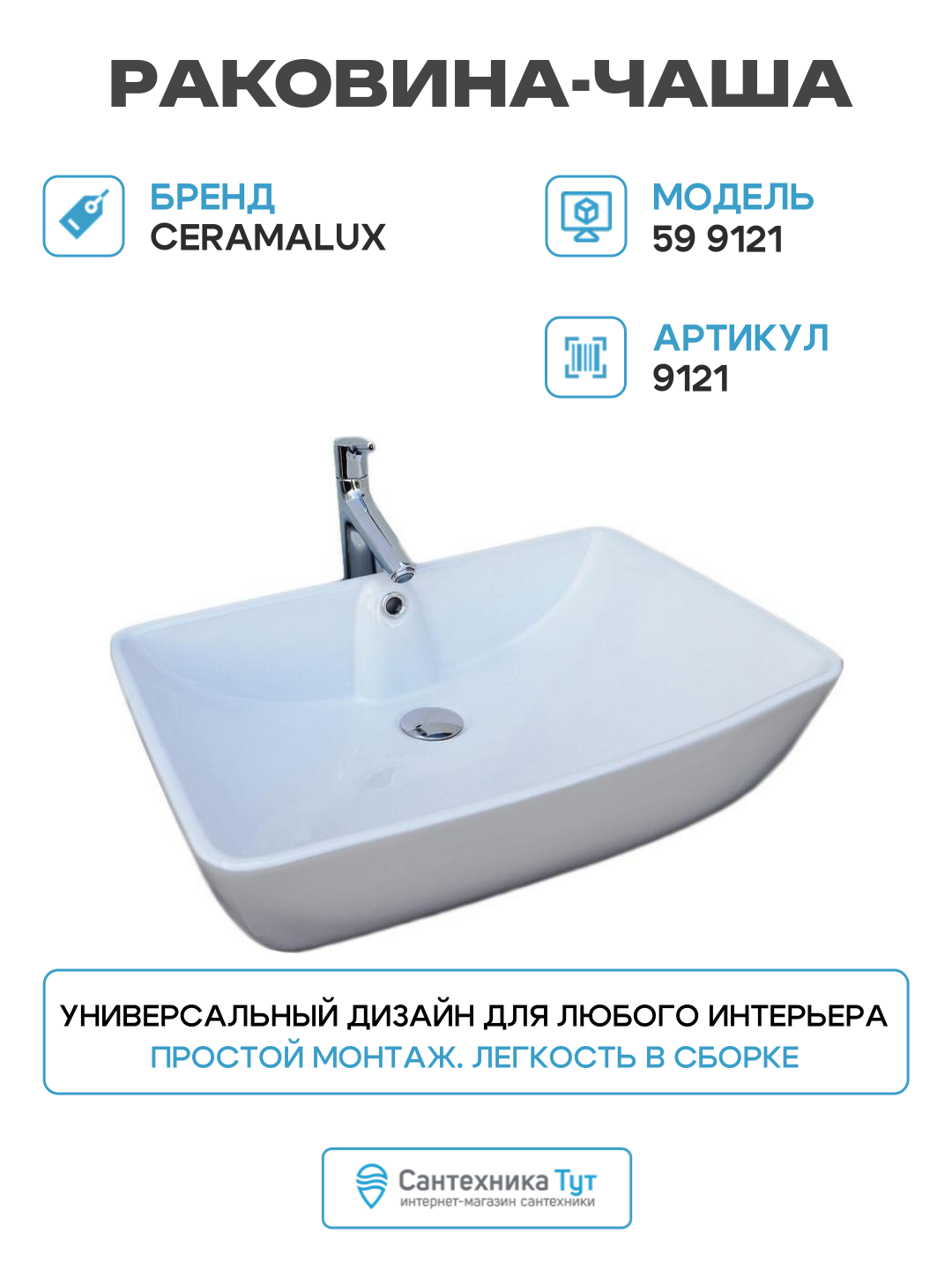 Раковина-чаша CeramaLux 59 9121 Белая фаянс накладная 590 Россия: сравнение цен, характеристики, фото, актуальное наличие и цены.