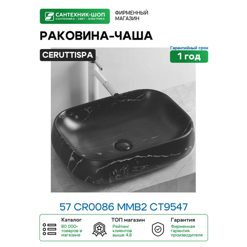 Раковина-чаша Ceruttispa 57 CR0086 MMB2 СТ9547 Черный матовый мрамор фарфор накладная – идеальное решение для современных ванных комнат. Эта раковина отличается стильным дизайном и функциональностью, благодаря чему станет ярким акцентом вашего интерьера.