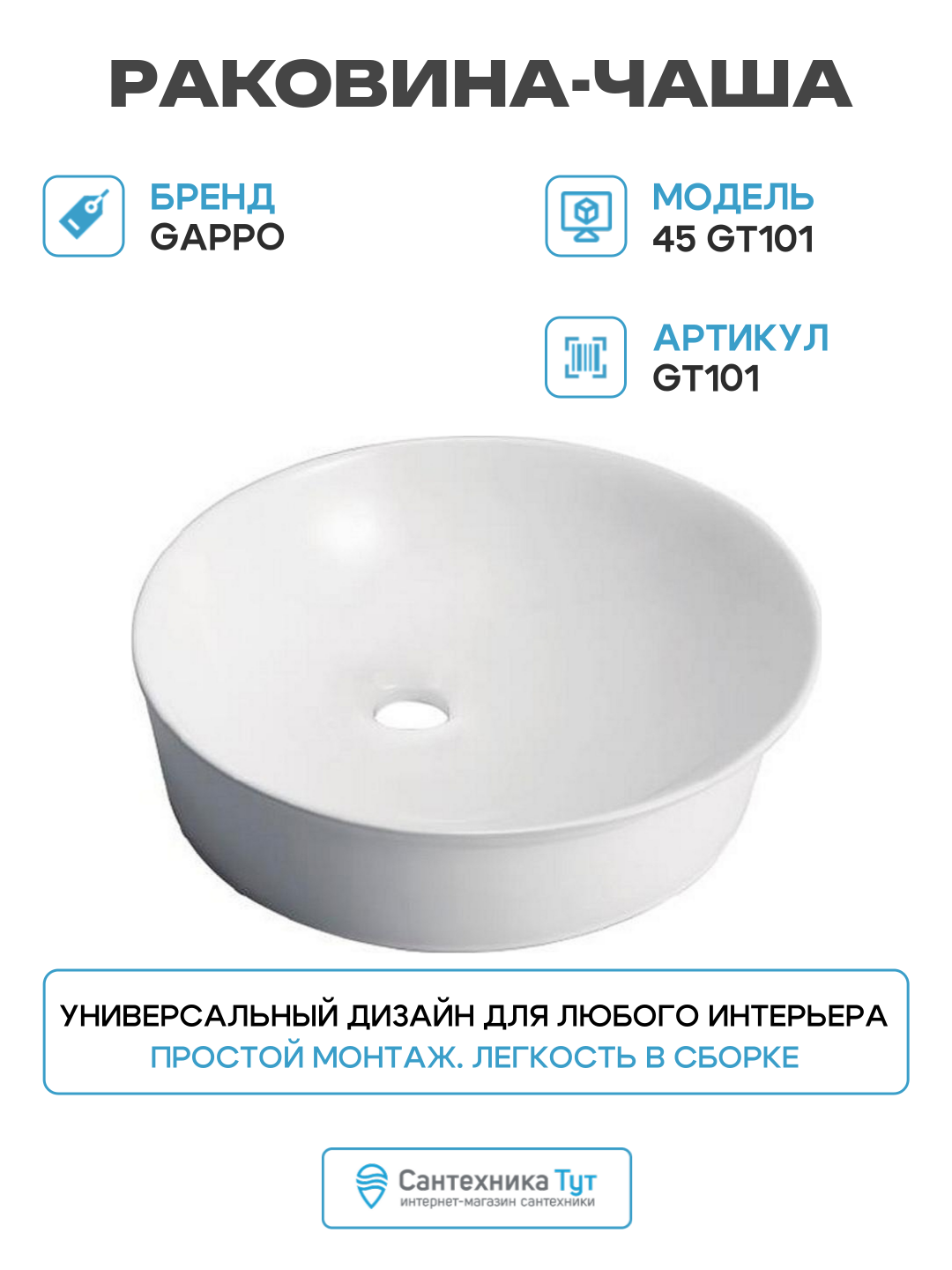 Купить Раковина-чаша Gappo 45 GT101 фарфор накладная 45 Китай, стильный дизайн с доставкой по всей России. Раковина-чаша Gappo 45 GT101 фарфор накладная 45 Китай, стильный дизайн: сравнение цен, характеристики, фото, актуальное наличие и цены.