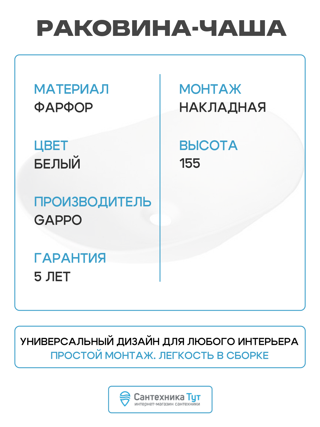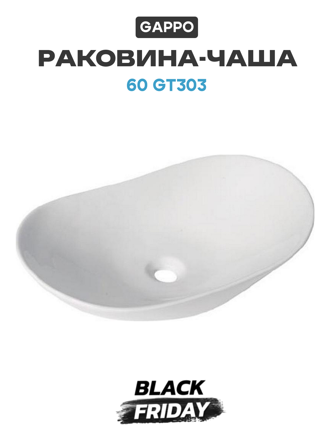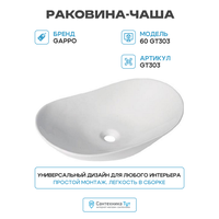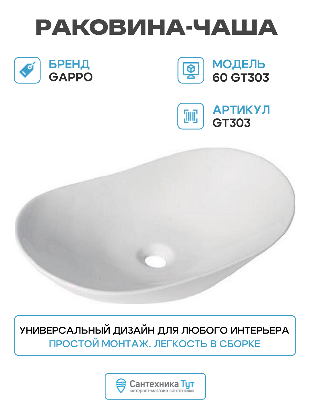 Раковина-чаша Gappo 60 GT303 Белая, овальная, накладная, современный стиль: сравнение цен, характеристики, фото, актуальное наличие и цены.