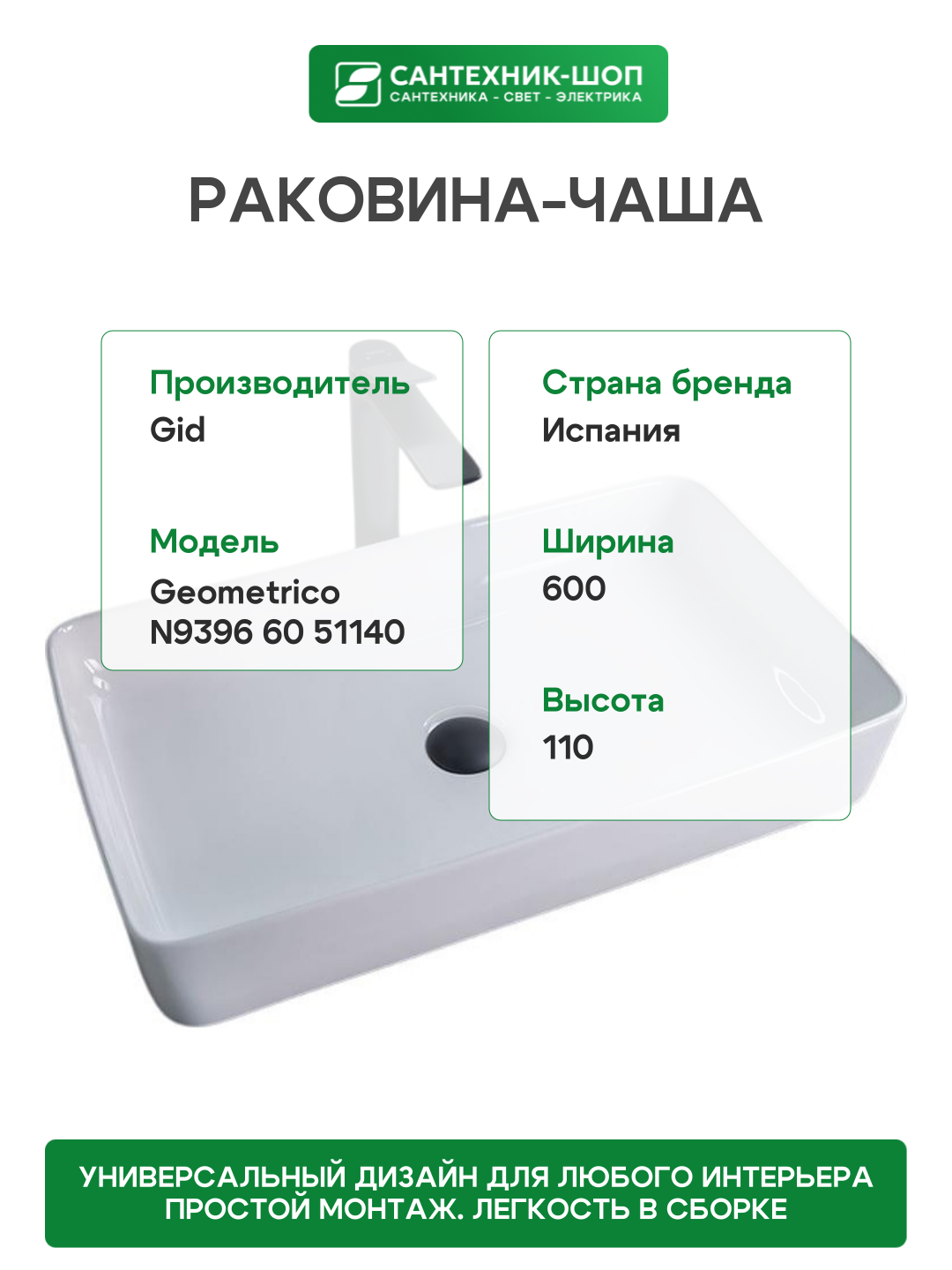 Раковина-чаша Gid Geometrico 60 N9396 51140 цвет Белый: сравнение цен, характеристики, фото, актуальное наличие и цены.