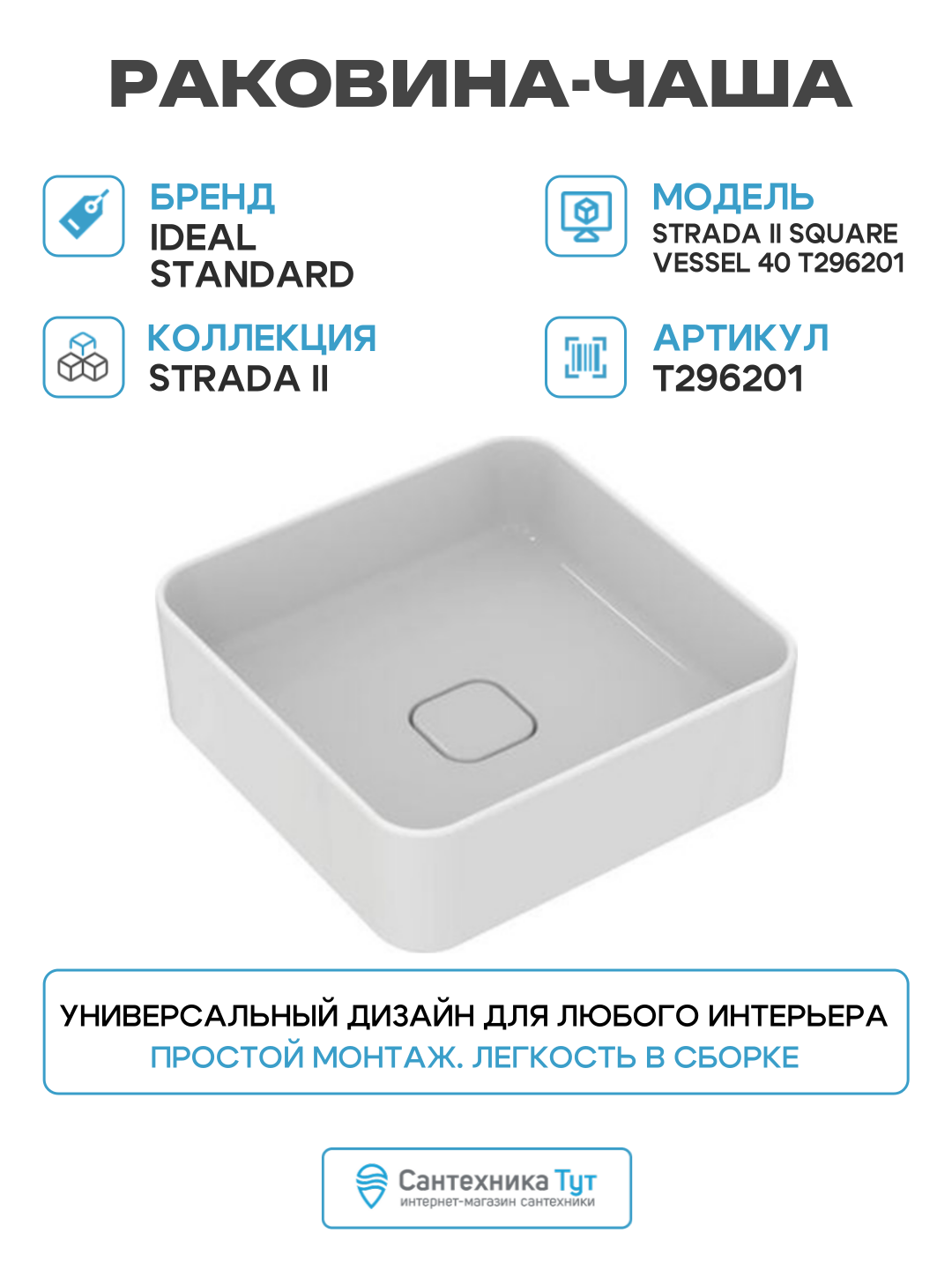 Раковина-чаша Ideal Standard Strada II Square Vessel 40 T296201 Euro White: сравнение цен, характеристики, фото, актуальное наличие и цены.