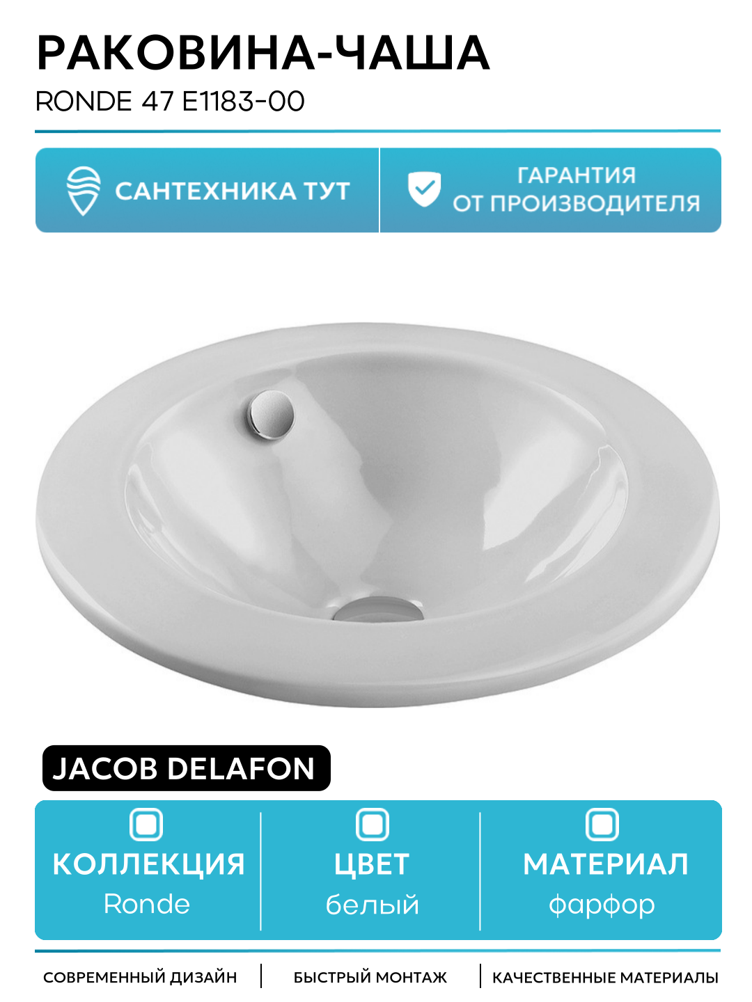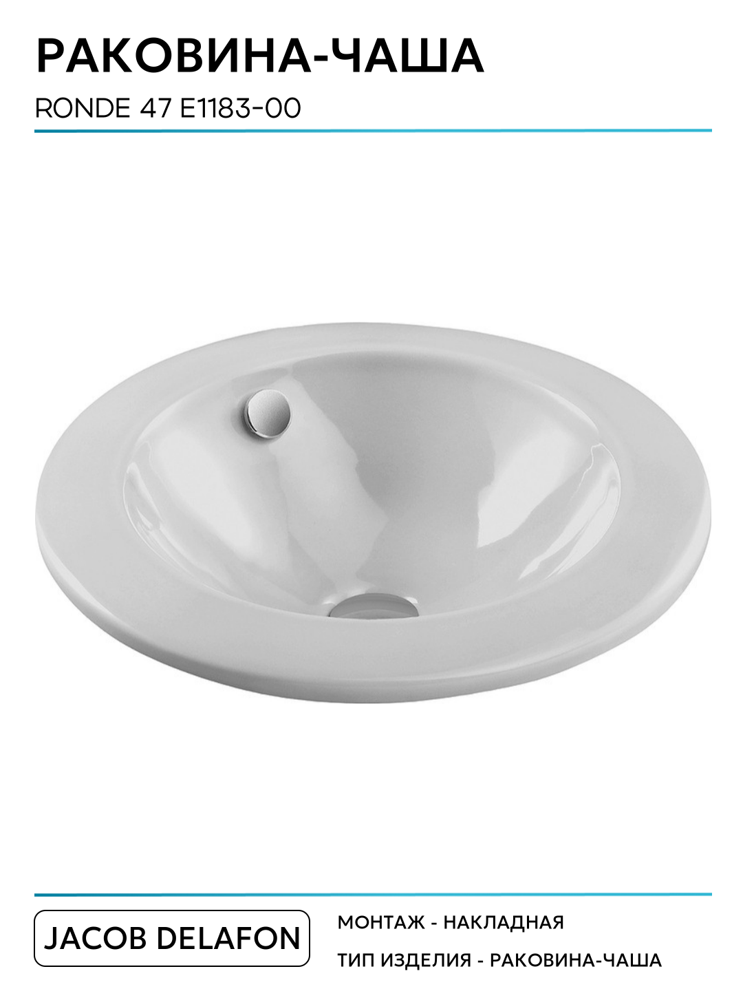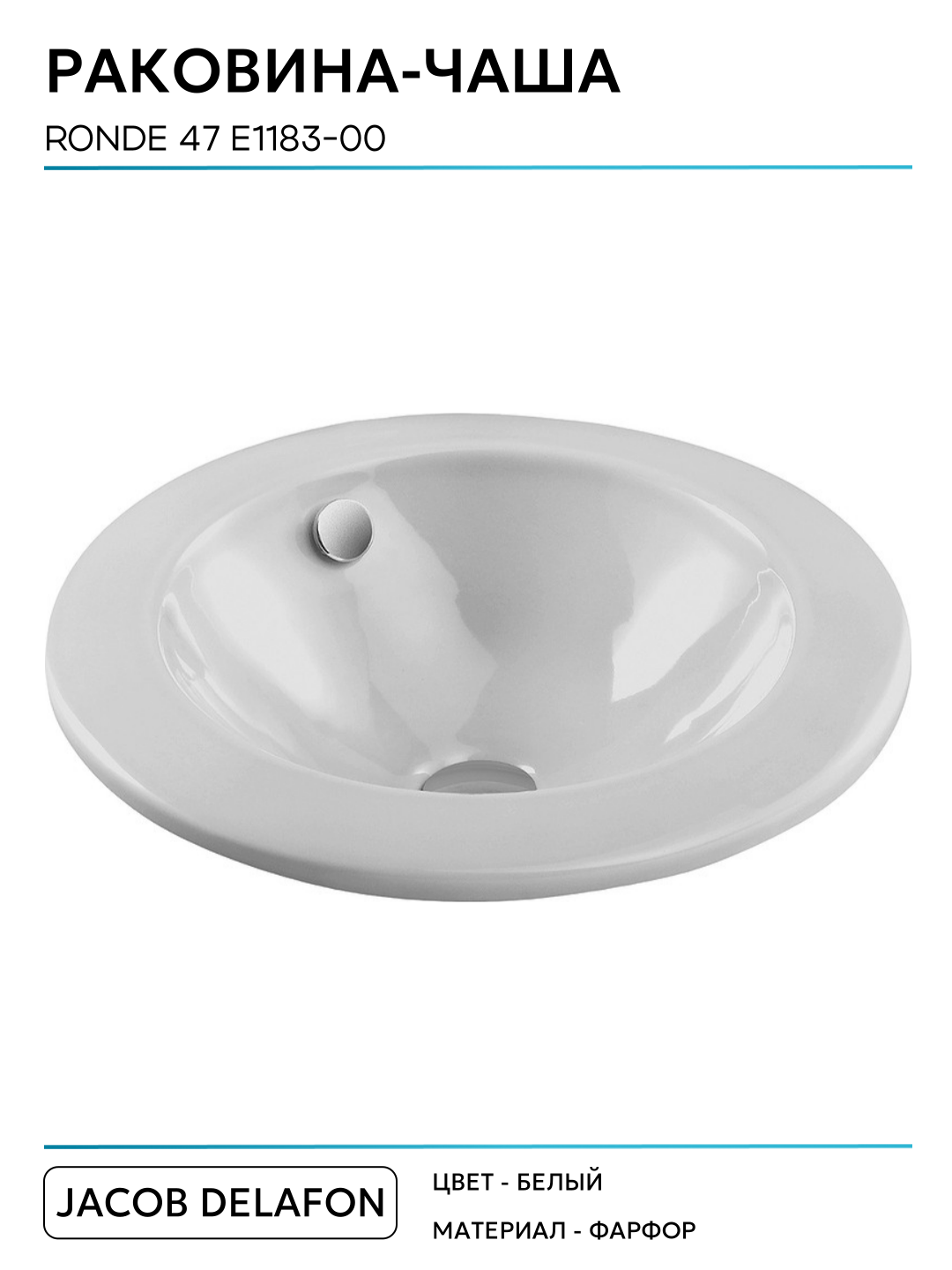 Купить Раковина-чаша Jacob Delafon Ronde 47 E1183-00 Белая фарфор накладная 47 с доставкой по всей России. Раковина-чаша Jacob Delafon Ronde 47 E1183-00 Белая фарфор накладная 47: сравнение цен, характеристики, фото, актуальное наличие и цены.