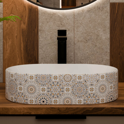 Большая накладная раковина Paffoss идеальна для тех, кто хочет придать нотку эксклюзивности интерьеру ванной комнаты или кухни. Стильная накладная раковина овальной формы подходит для установки на столешницу, отлично сочетается с тумбами для санузлов от разных производителей. Гладкая и блестящая поверхность раковины с минималистичным геометрическим дизайном не впитывает неприятные запахи и легко моется. В овальной раковине с дизайнерским изображением нет отверстия для смесителя, поэтому следует заранее определиться с посадочным местом и краном. При подборе смесителя важно учитывать габариты чаши: высота — 13 см, ширина — 52 см, глубина — 33 см. Компактная форма и размеры раковины позволяют сэкономить место в небольших помещениях, не жертвуя комфортом, а высокий бортик не даст воде расплескаться. Также в конструкции нет слива-перелива, поэтому при закрытом сливном отверстии нужно следить за уровнем воды. Для обеспечения сохранности сантехники во время транспортировки мы используем упаковку из пенопласта и заводскую коробку.