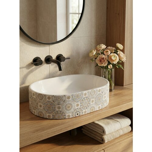 Большая накладная раковина Paffoss идеальна для тех, кто хочет придать нотку эксклюзивности интерьеру ванной комнаты или кухни. Стильная накладная раковина овальной формы подходит для установки на столешницу, отлично сочетается с тумбами для санузлов от разных производителей. Гладкая и блестящая поверхность раковины с минималистичным геометрическим дизайном не впитывает неприятные запахи и легко моется. В овальной раковине с дизайнерским изображением нет отверстия для смесителя, поэтому следует заранее определиться с посадочным местом и краном. При подборе смесителя важно учитывать габариты чаши: высота — 13 см, ширина — 53 см, глубина — 33 см. Компактная форма и размеры раковины позволяют сэкономить место в небольших помещениях, не жертвуя комфортом, а высокий бортик не даст воде расплескаться. Также в конструкции нет слива-перелива, поэтому при закрытом сливном отверстии нужно следить за уровнем воды. Для обеспечения сохранности сантехники во время транспортировки мы используем упаковку из пенопласта и заводскую коробку.