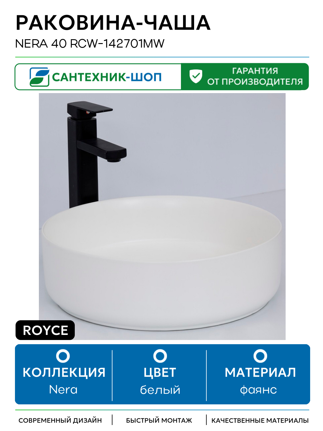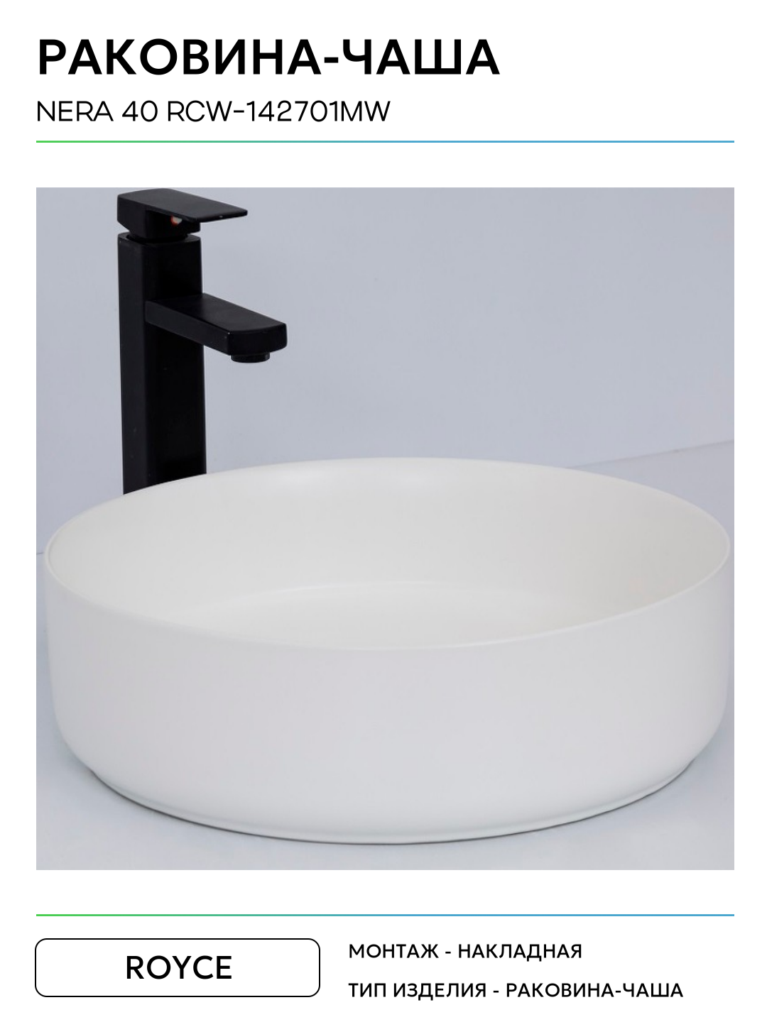 Раковина-чаша Royce Nera 40 RCW-142701MW Белая матовая фаянс накладная 40 Россия: сравнение цен, характеристики, фото, актуальное наличие и цены.