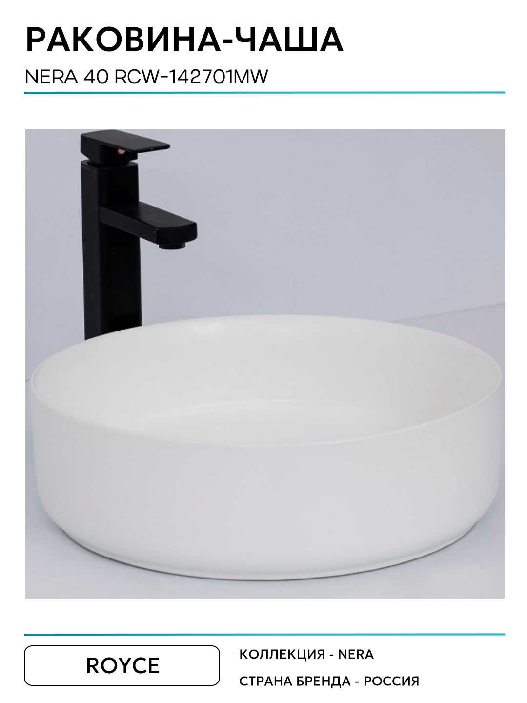 Раковина-чаша Royce Nera 40 RCW-142701MW Белая матовая фаянс накладная 40 Россия