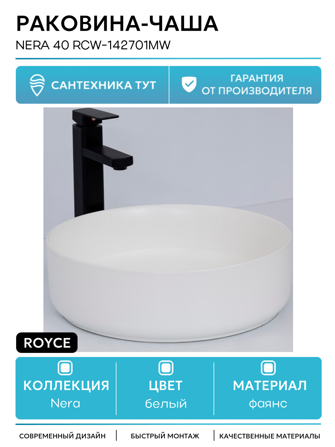 Раковина-чаша Royce Nera 40 RCW-142701MW Белая матовая фаянс накладная 40 Россия: сравнение цен, характеристики, фото, актуальное наличие и цены.