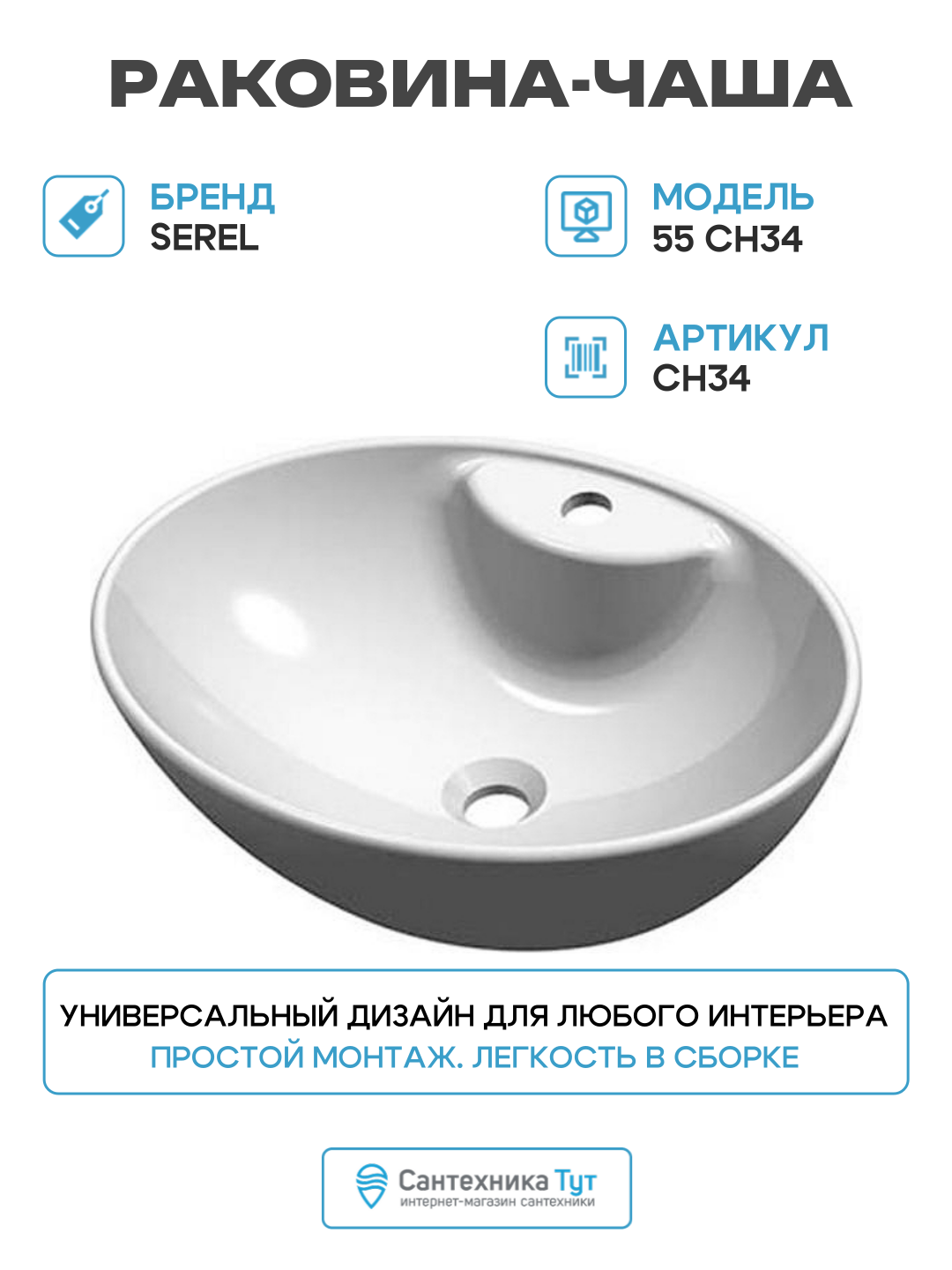 Раковина-чаша Serel 55 CH34 Белая фарфор накладная 55, овальная: сравнение цен, характеристики, фото, актуальное наличие и цены.