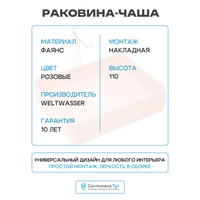 Раковина-чаша WeltWasser Elbach 2178 MP 51 10000004511 Розовая матовая фаянс накладная: сравнение цен, характеристики, фото, актуальное наличие и цены.