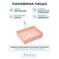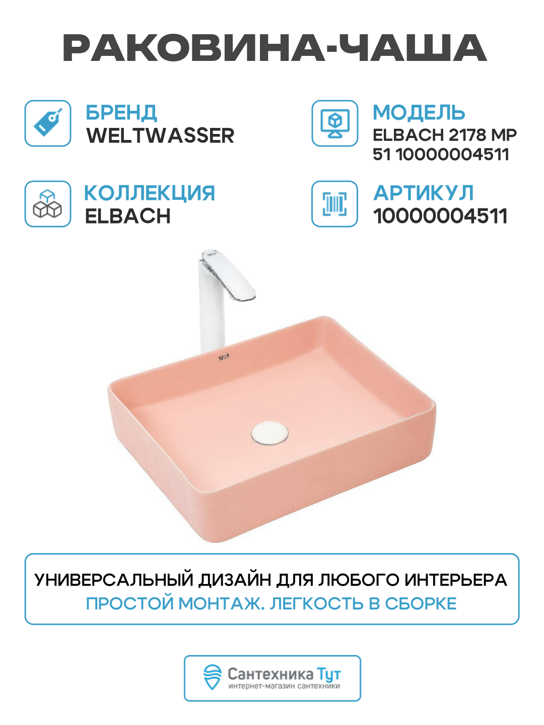 Купить Раковина-чаша WeltWasser Elbach 2178 MP 51 10000004511 Розовая матовая фаянс накладная с доставкой по всей России.