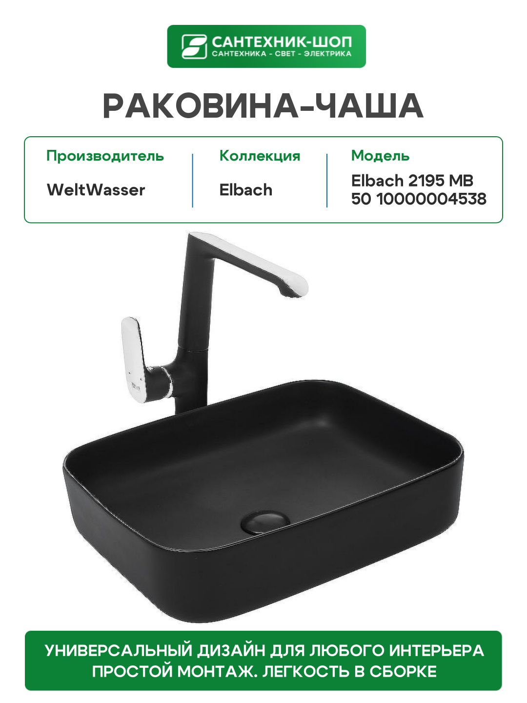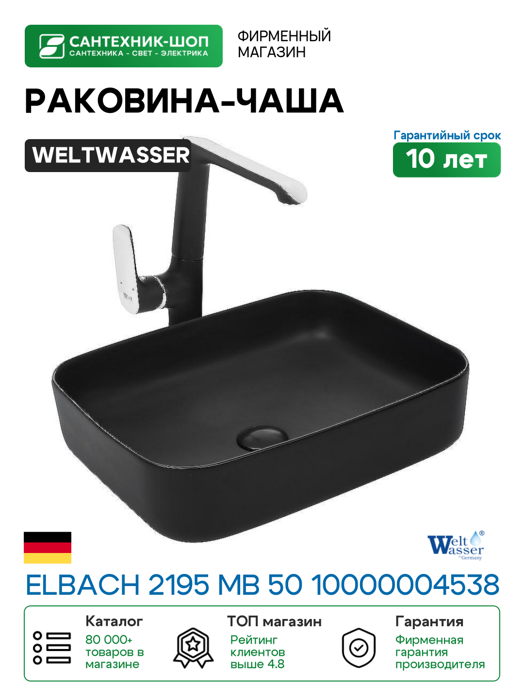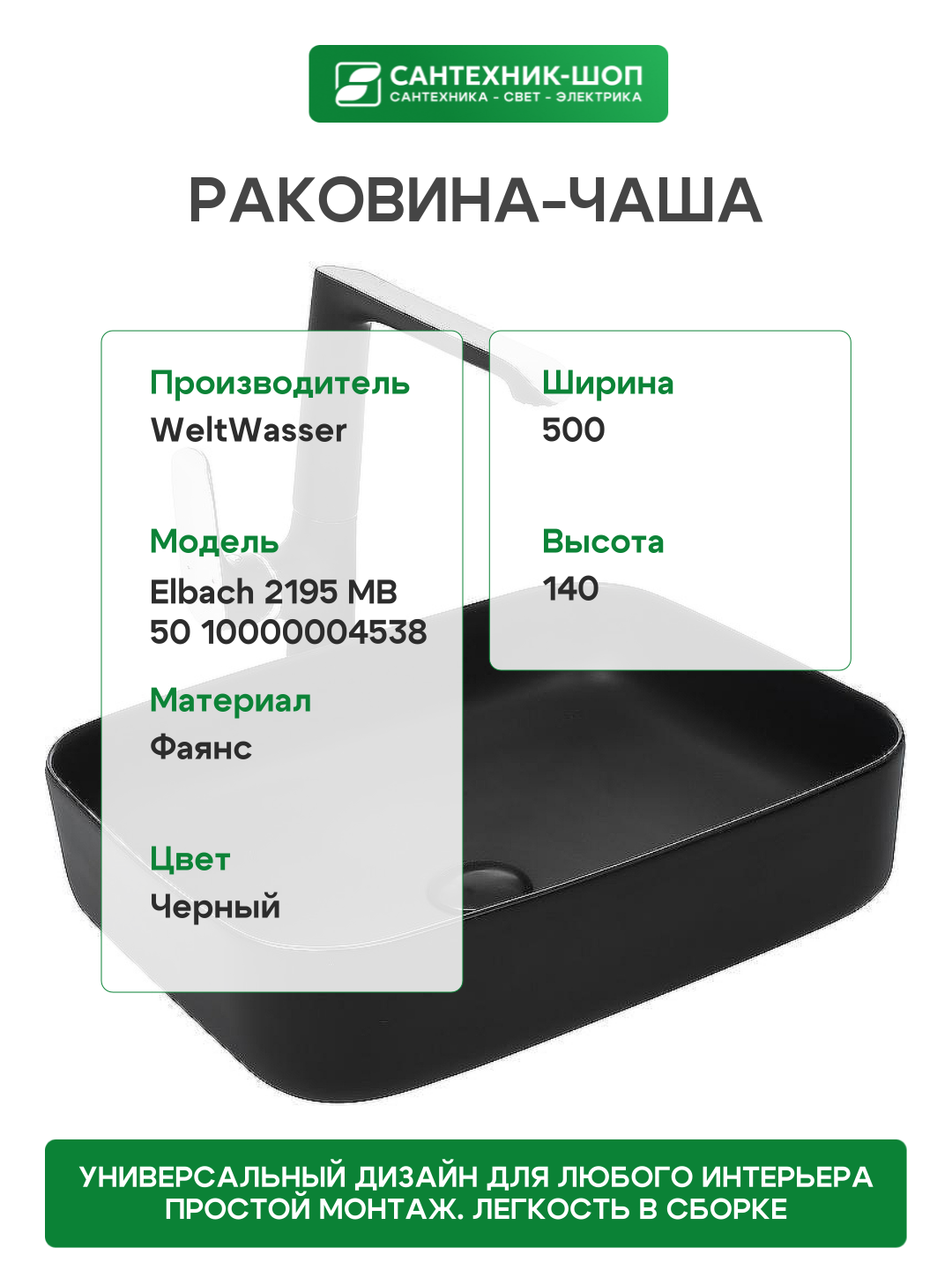 Раковина-чаша WeltWasser Elbach 2195 MB 50 10000004538 Черная матовая фаянс накладная: сравнение цен, характеристики, фото, актуальное наличие и цены.