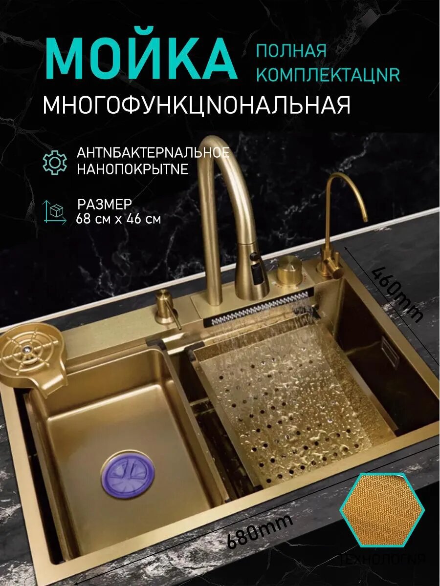 Мойка кухонная ououfaucet, из нержавеющей стали, матовое покрытие,68*45 CM: сравнение цен, характеристики, фото, актуальное наличие и цены.