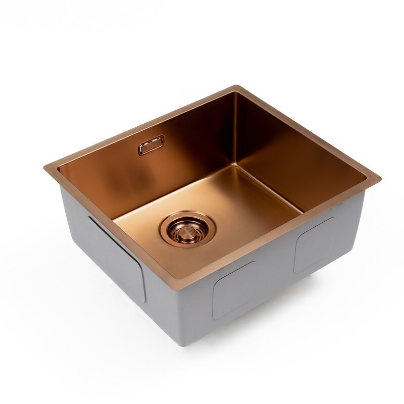 Раковина для кухни врезная нержавеющая сталь с PVD покрытием Grandex Aqua OPTIMA 49, 49х44х20 / Мойка кухонная накладная нержавейка с сифоном, медная: сравнение цен, характеристики, фото, актуальное наличие и цены.