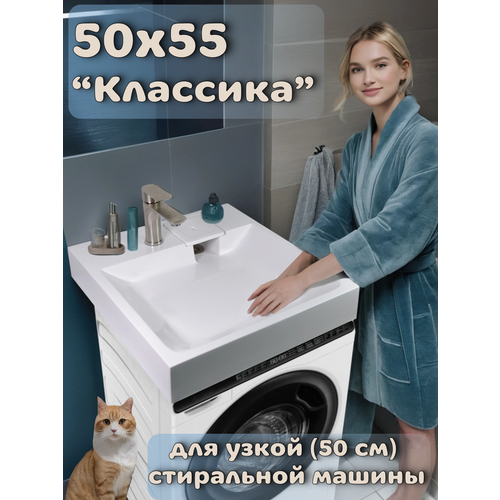 Раковина для установки над стиральной машиной «Классика-50/55» (50×55), цвет белый, литьевой мрамор: сравнение цен, характеристики, фото, актуальное наличие и цены.