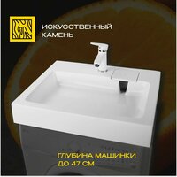 Orange 588х585 - модель предназначена для ванной комнаты или кухни с ограниченным пространством. Умывальник отлично экономит место за счет оптимальной формы, поэтому подойдет для установки в туалете. Материал изделия литьевой мрамор, все углы и плоскости тщательно выверяются на этапе производства, что говорит о премиум качестве сантехники. В комплекте идут два кронштейна, рассчитанные на вес мойки. В центре рукомойника отверстие под смеситель. Защитное покрытие гелькоут устраняет возможность появления царапин на поверхности. Удобно использовать и не требует особого ухода. Обратите внимание, максимально допустимая глубина стиральной машины 470 мм. Измеряйте по верхней крышке.