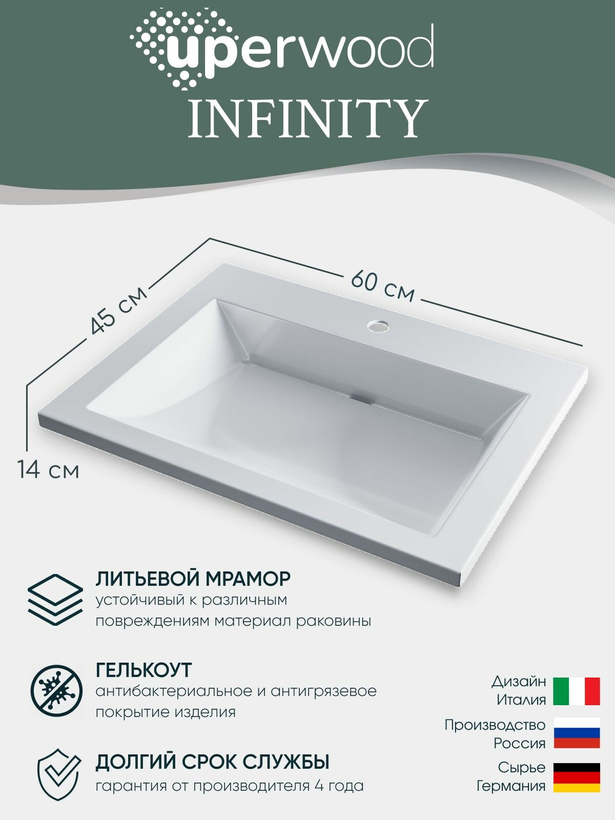 Купить Раковина для ванной 60 см, Uperwood Infinity, белая глянцевая с доставкой по всей России. Раковина для ванной 60 см, Uperwood Infinity, белая глянцевая: сравнение цен, характеристики, фото, актуальное наличие и цены.