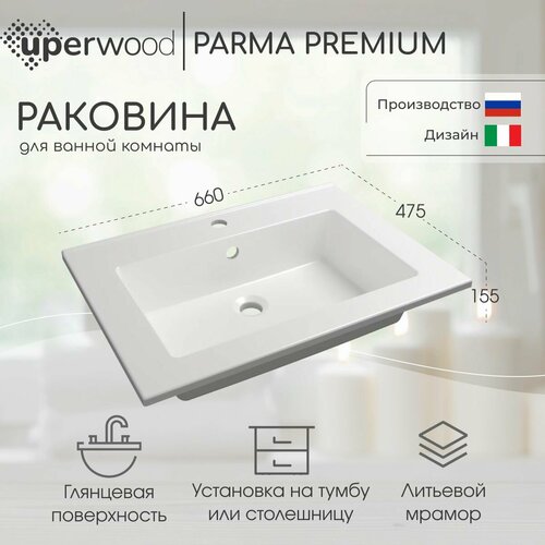 Купить Раковина для ванной 66 см, Uperwood Parma Premium, белая глянцевая с доставкой по всей России. Раковина для ванной 66 см, Uperwood Parma Premium, белая глянцевая: сравнение цен, характеристики, фото, актуальное наличие и цены.