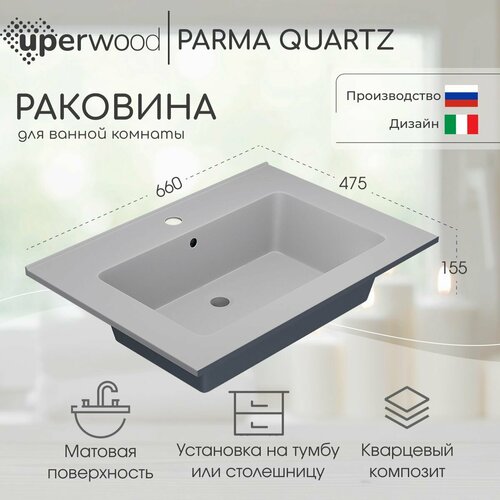 Раковины для ванной комнаты Uperwood Parma Quartz изготовлены из кварцевого композита и предназначены для установки на тумбы из коллекции Uperwood Parma Premium.