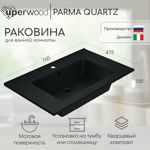 Купить Раковина для ванной 76,5 см, Uperwood Parma Quartz, черная матовая, «уголь» с доставкой по всей России. Раковина для ванной 76,5 см, Uperwood Parma Quartz, черная матовая, «уголь»: сравнение цен, характеристики, фото, актуальное наличие и цены.