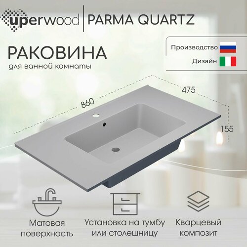 Раковины для ванной комнаты Uperwood Parma Quartz изготовлены из кварцевого композита и предназначены для установки на тумбы из коллекции Uperwood Parma Premium.
