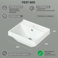 Купить Раковина Sanita Fest 60 Luxe, белая, фаянс, 1 отверстие под смеситель, прямоугольная, 60х40х22 см с доставкой по всей России.