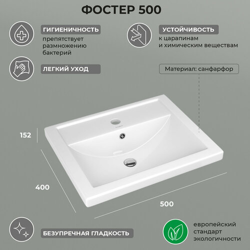 Раковина для ванной KIROVIT Фостер - это керамическая раковина, которая станет отличным дополнением к вашей ванной комнате. Она имеет современный дизайн и выполнена из качественных материалов, что гарантирует ее долговечность и надежность.
